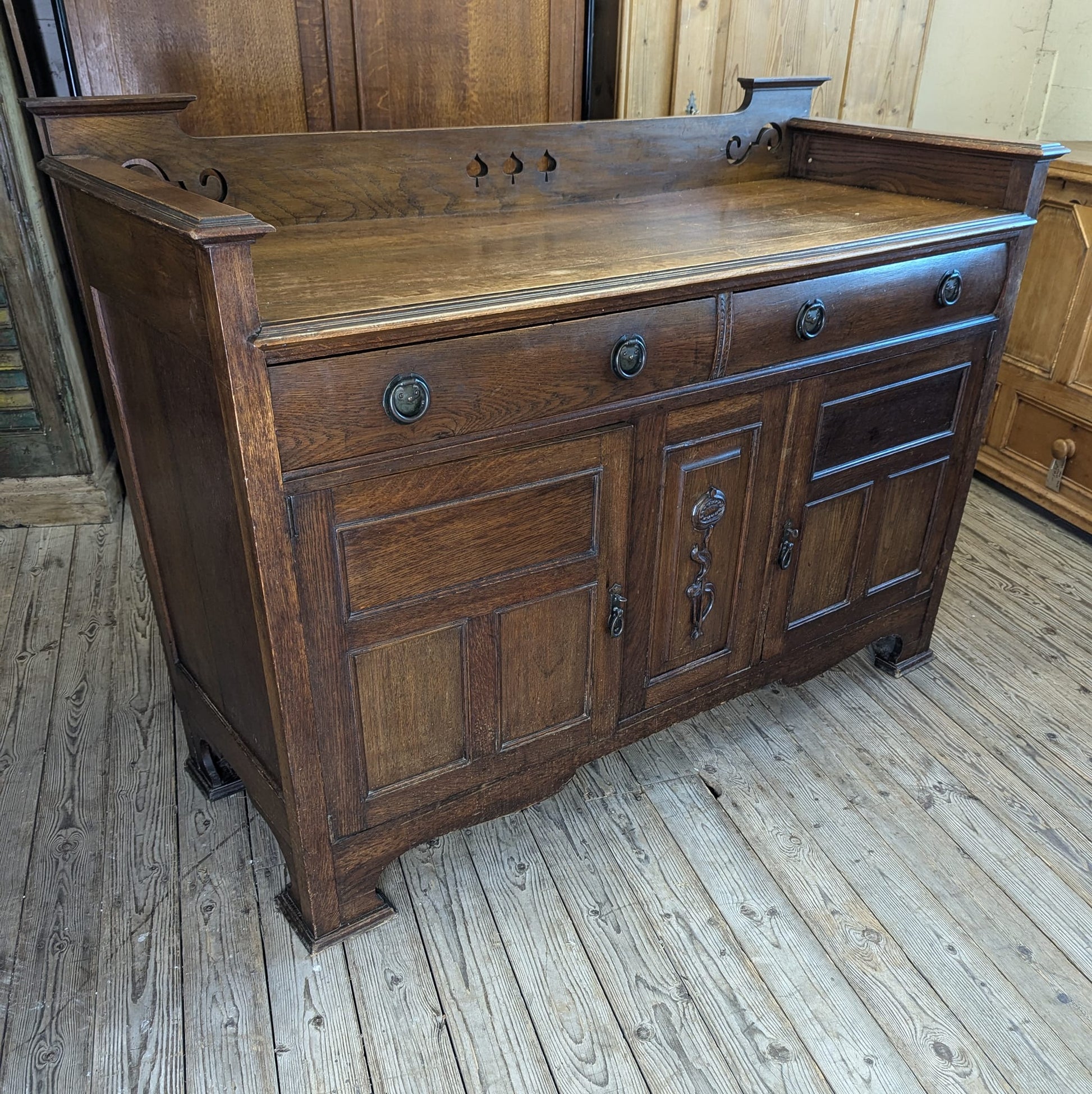 A lovely large oak arts and crafts sideboard.  it has loads of lovely a&c detailing and is just a great looking piece in general really.