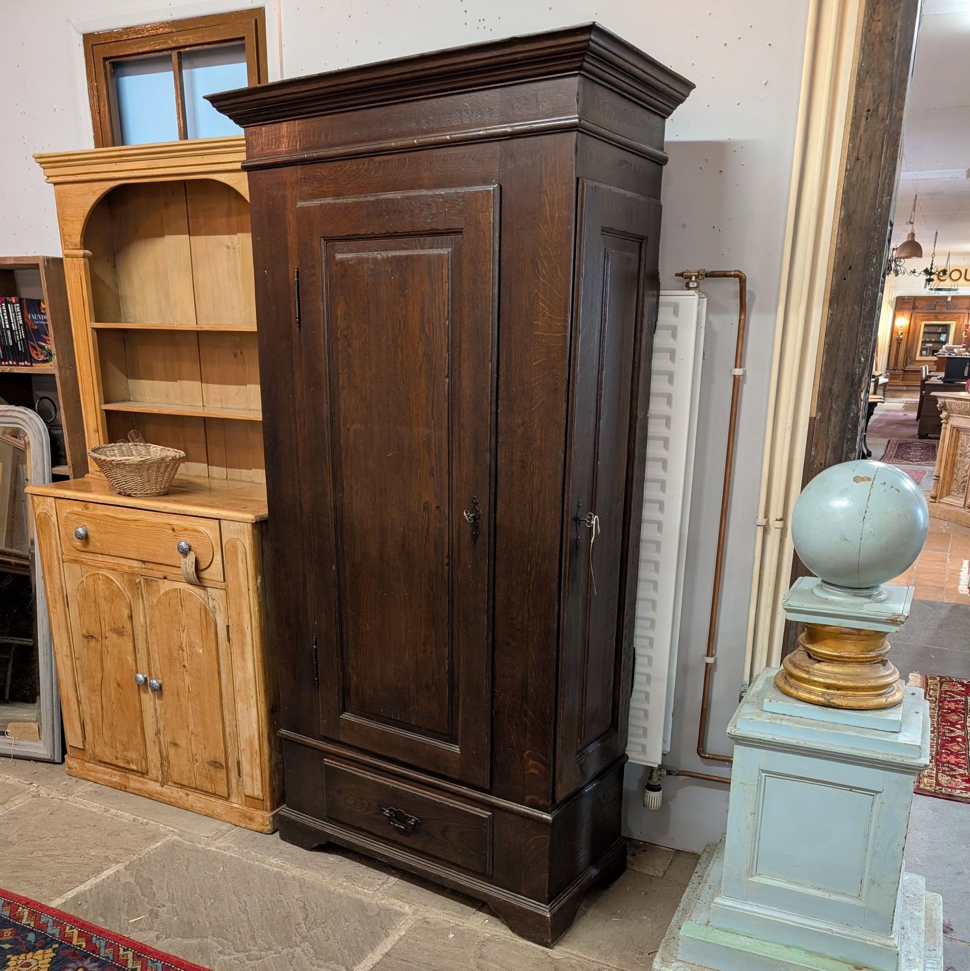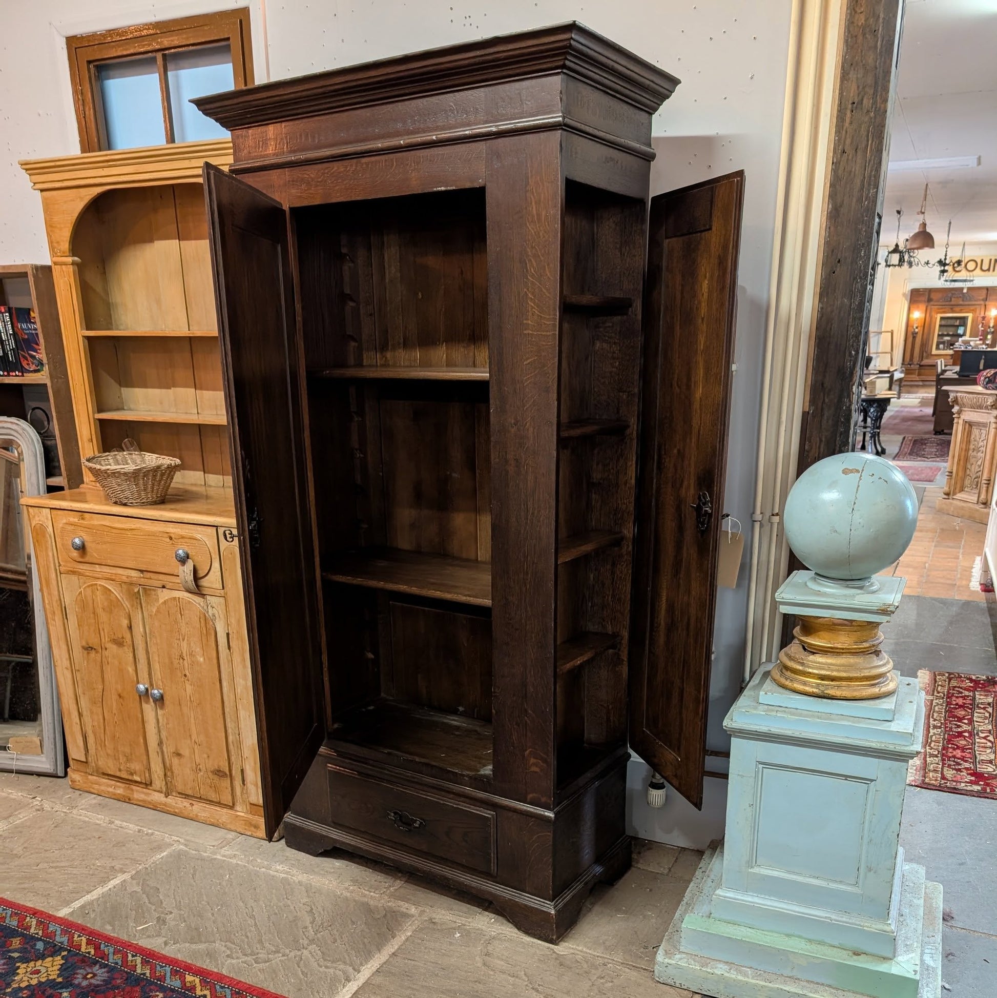 Here's an interesting cupboard. It's a nice old dark oak linen cupboard but with an additional small cupboard on one side! A weird thing that obviously had a very definite original purpose that we will probably never know! Cool thing though!