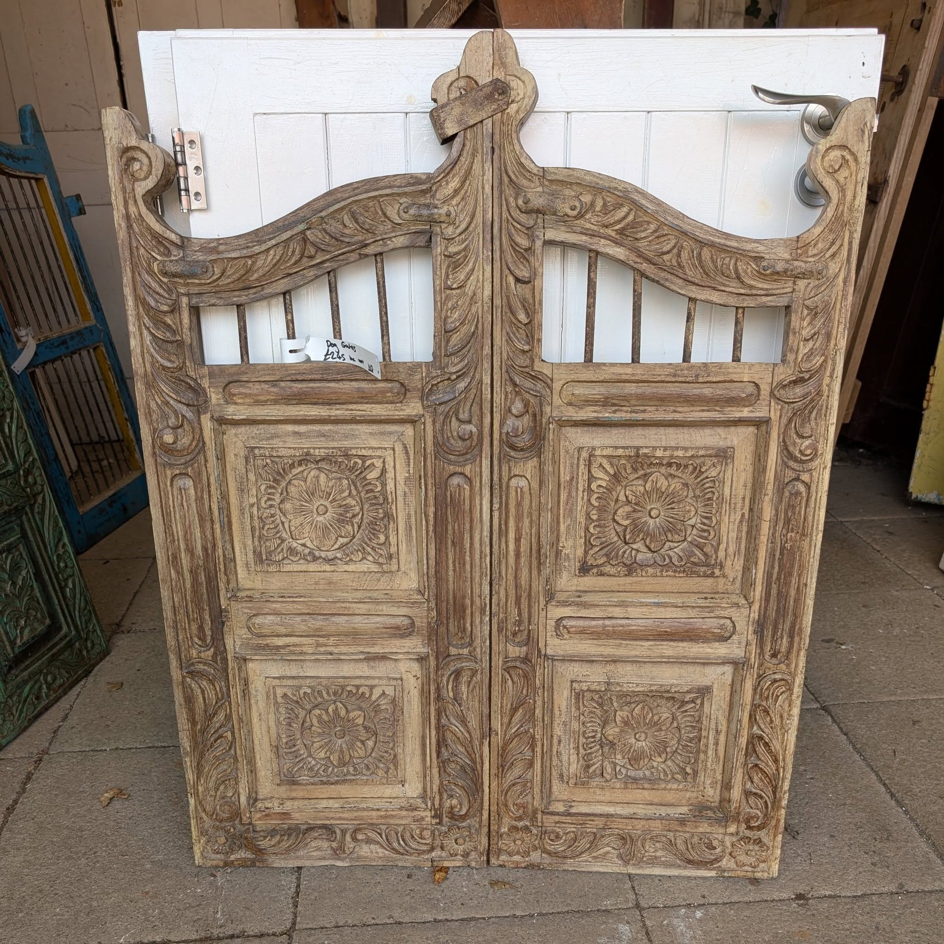 A nice set of brown indian teak dog gates.