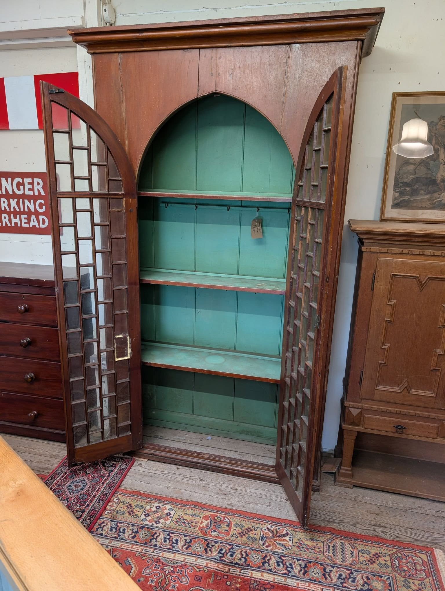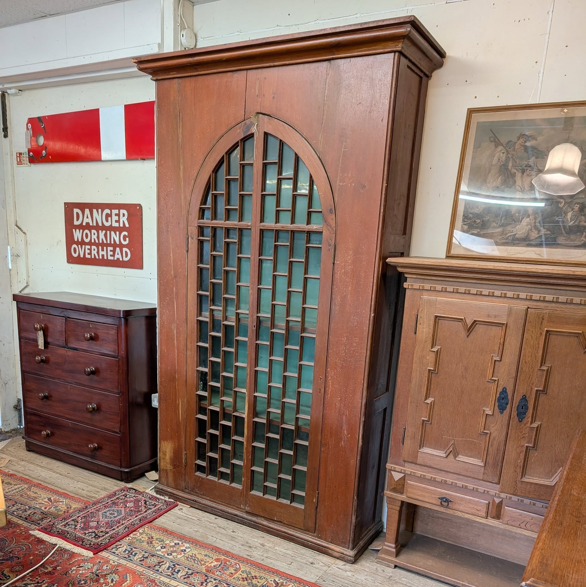 Here's another great looking piece of furniture! This very large cupboard with glazed arched doors has loads of storage inside. It's also a tad rustic in places but with it's eastern vibe it would look amazing in the right room.
