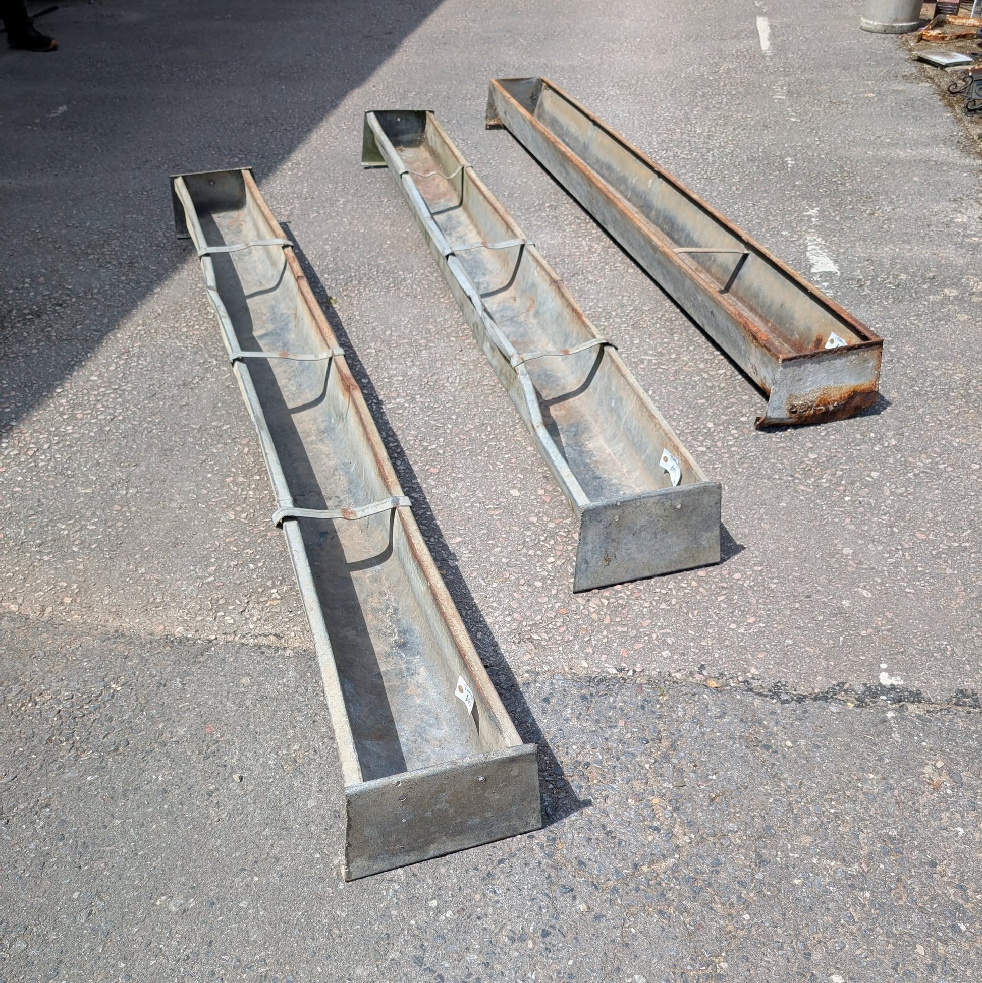 3 nice long feed troughs. All a bit wonky but definitely usable. One is a bit rusted at one end but still good to use as a planter etc.