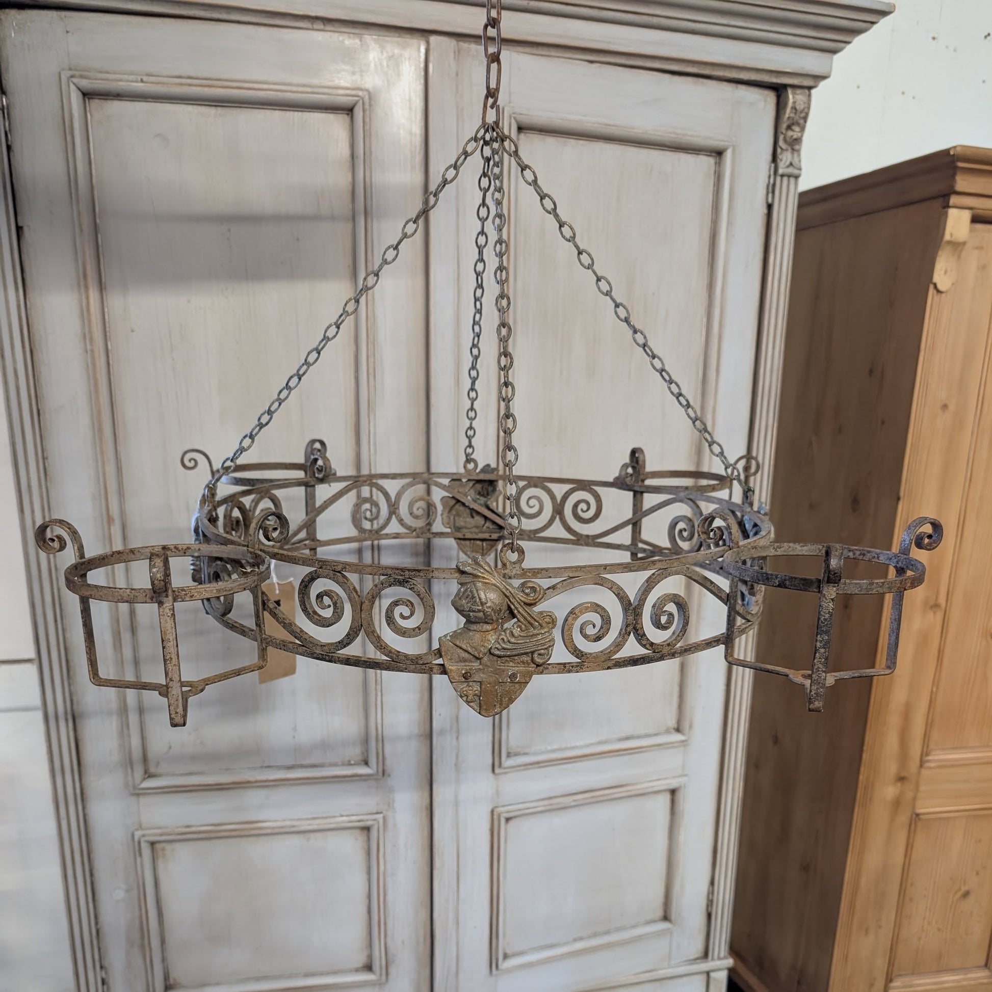 A great looking medieval style hanging candelabra. This one is 78cm diameter so quite large and it would look great with some big white candles in it we think.