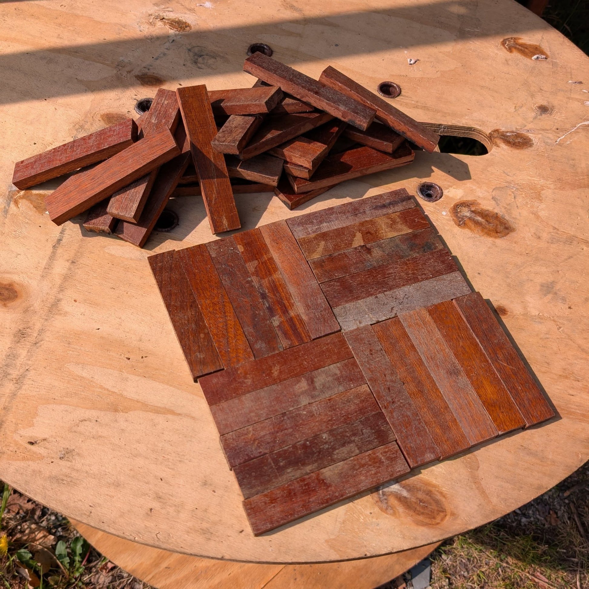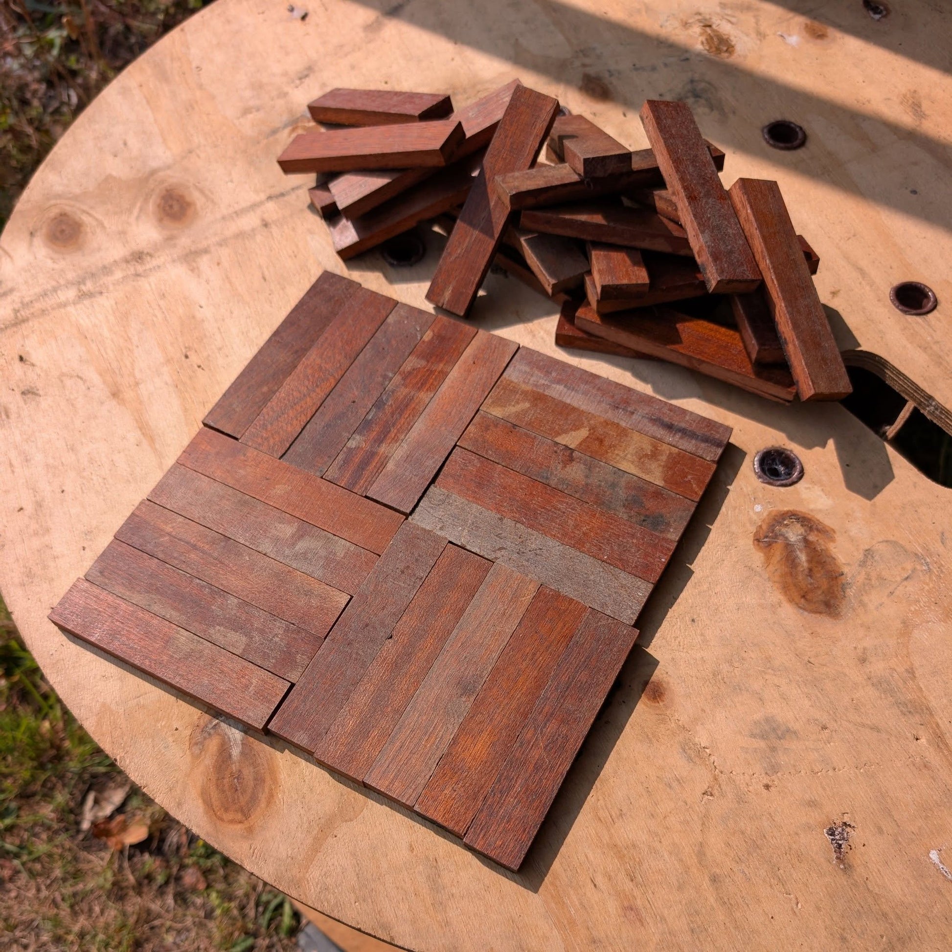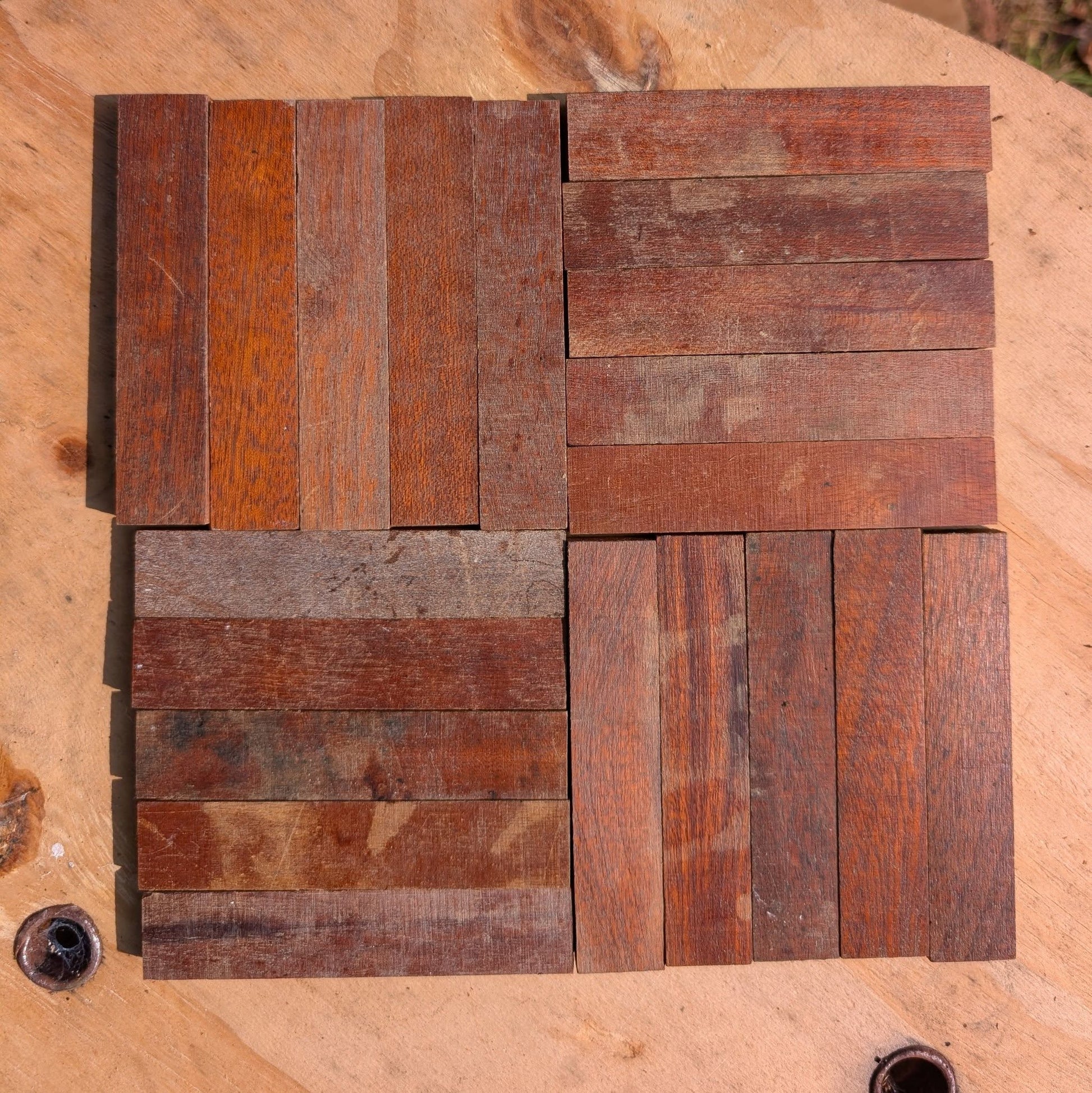 Parquet flooring. We don't often sell parquet as it can be so messy to deal with but we have just had approx 35sqm from a local house. This one is a smaller size than usual in the Jenga sized 4 1/2" x 1" blocks.
