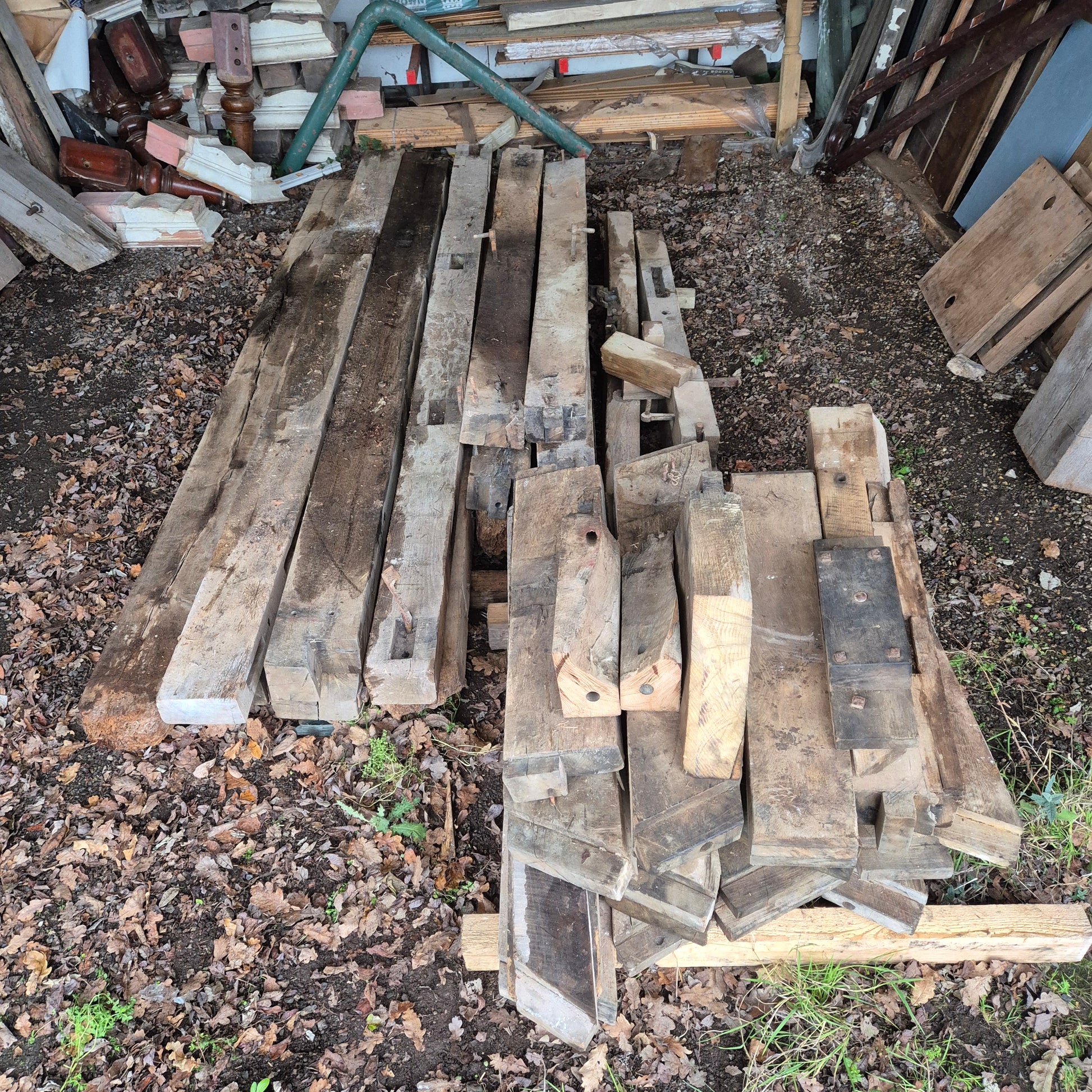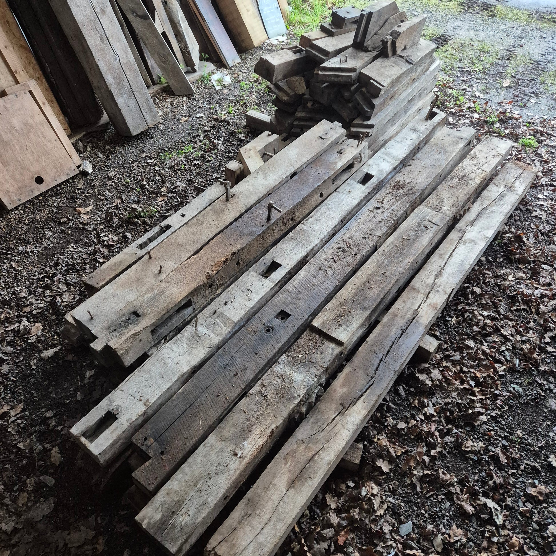 We have a large amount of very old timber reclaimed from a house in North Devon. It was originally a Belfry so has notches and ironwork in places.