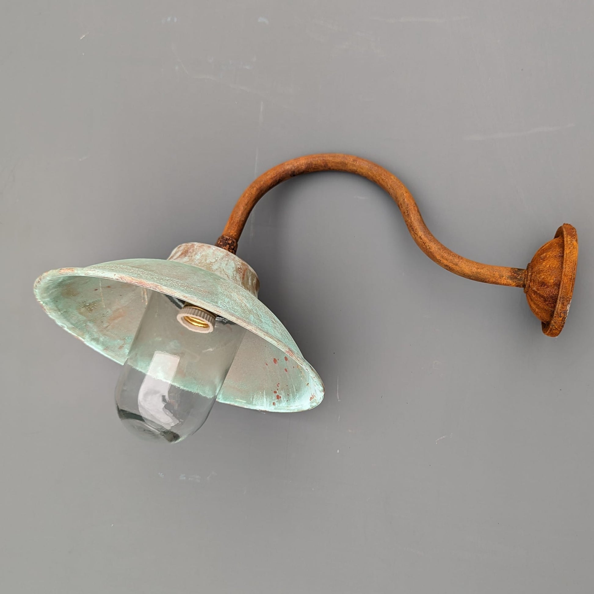 Simply with aged copper shade - on display in our showroom and one pair available from stock. Can be used inside and outside.