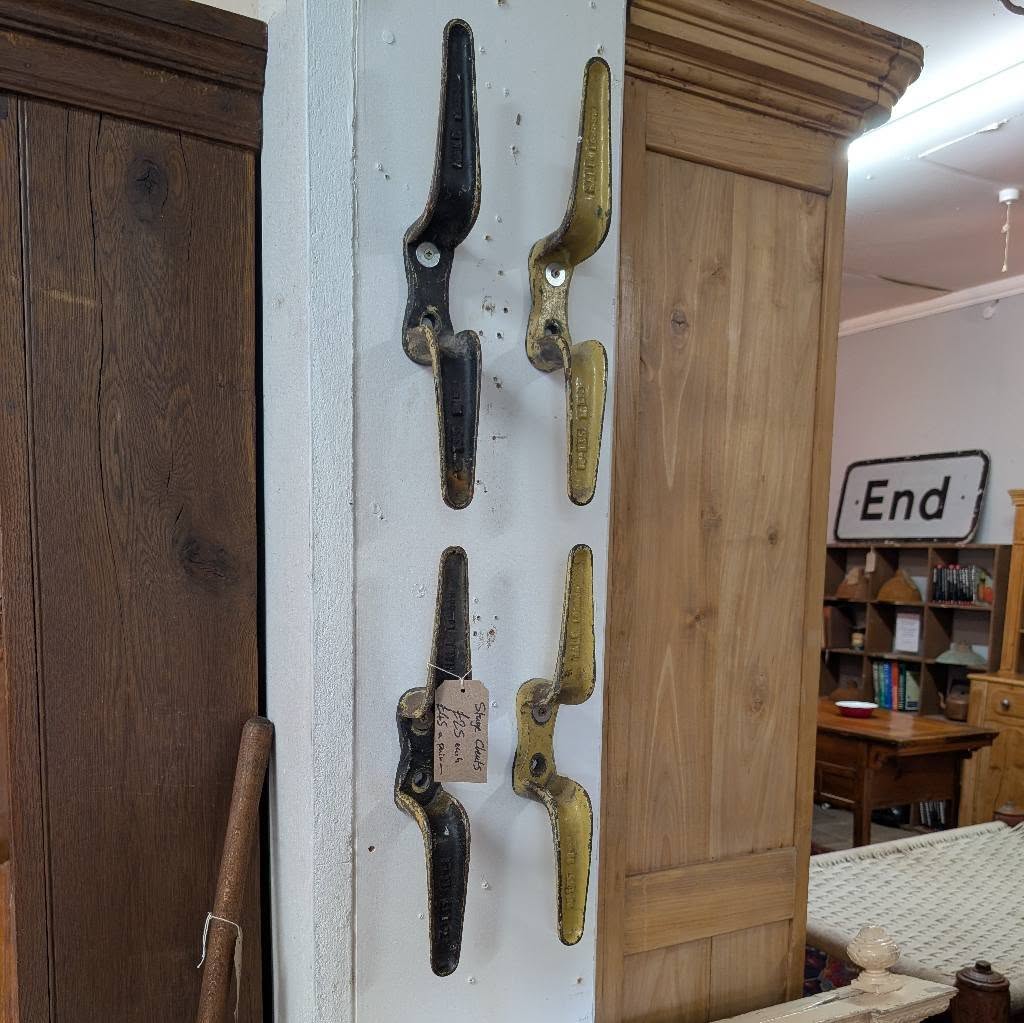 These are theatre cleats so used for stage curtains and backdrops etc. Very cool old things. We're not quite sure what the secondary use could be yet but we're sure someone will come up with something ingenious! (Or they would make quite funny curtain ties in a normal room!). £25 each or £45 for a pair.