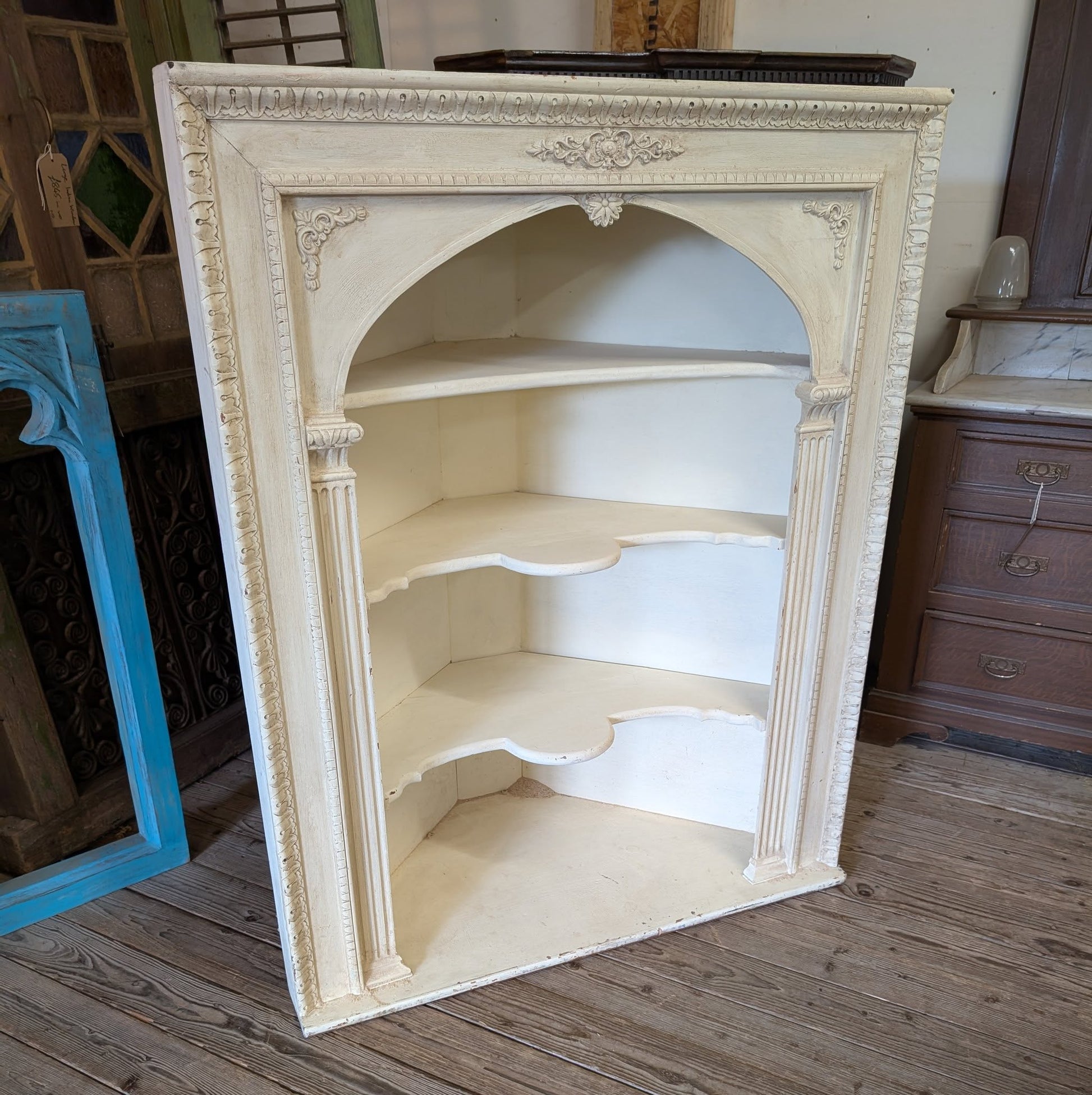 A nice and large corner cupboard that came from a local house and has Eastern influences to the design. The back is made from ply so our guess is that this one is mid 20th century.